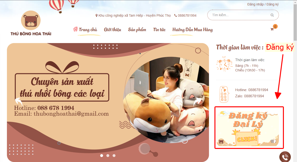 Bước 1: Truy cập website , click banner ĐĂNG KÝ ĐẠI LÝ điền thông tin đăng ký ( tên cửa hàng + địa chỉ ) để tạo tài khoản mua hàng và xem báo giá sản phẩm.